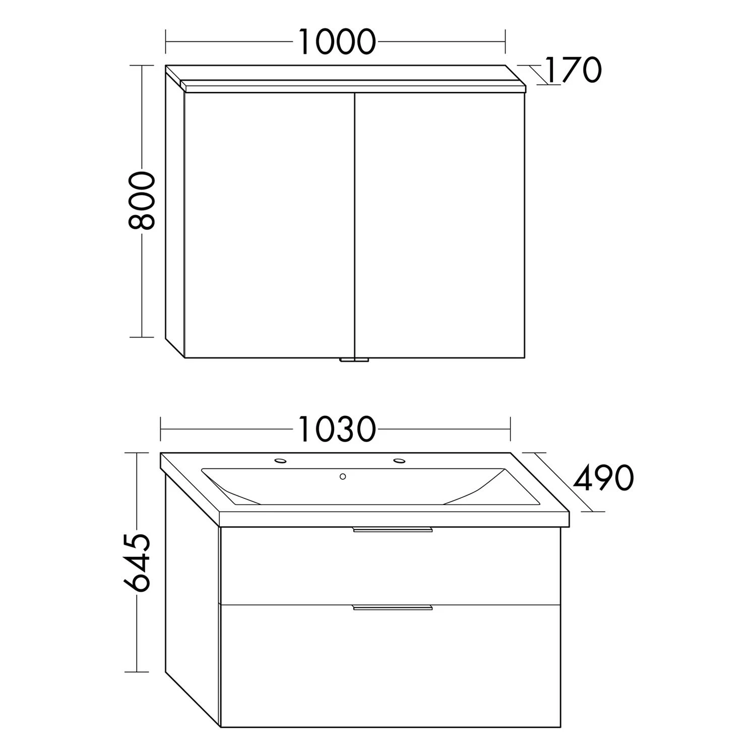 burgbad Eqio Möbelkombination inkl. Keramik-Waschtisch 103 cm, 2 Hahnlöcher, mit Griff G0200