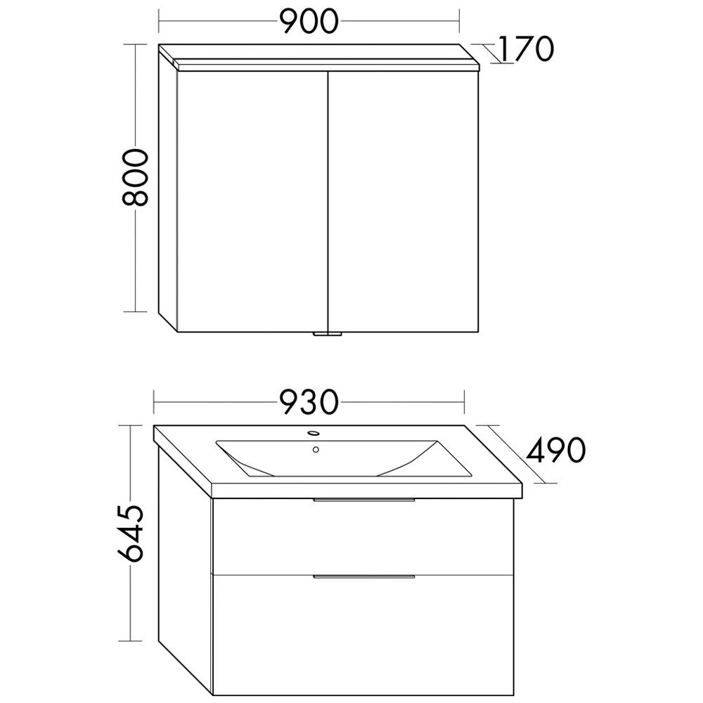 burgbad Eqio Möbelkombination inkl. Keramik-Waschtisch 93 cm, mit Griff G0146