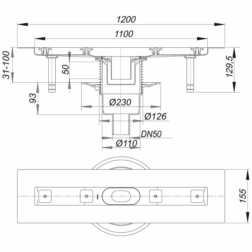 Dallmer CeraLine senkrecht F Duschrinne 110 cm, DN 50