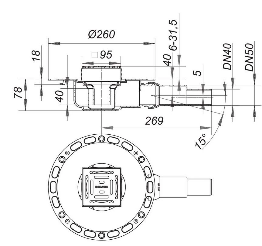 - Ablaufleistung (bei 20 mm Anstauhöhe): DN 40= 0,6 l/s bzw. DN 50= 0,6 l/s