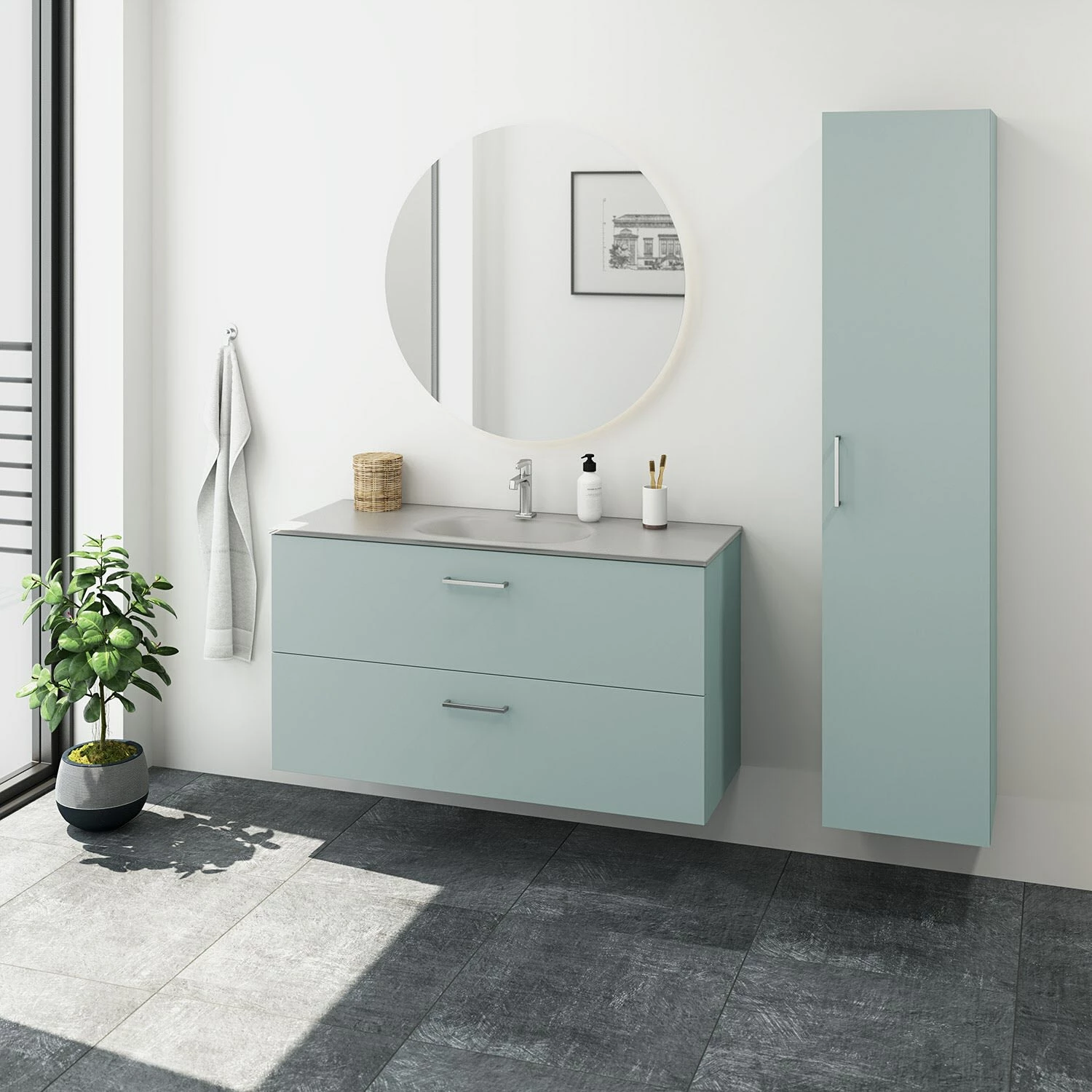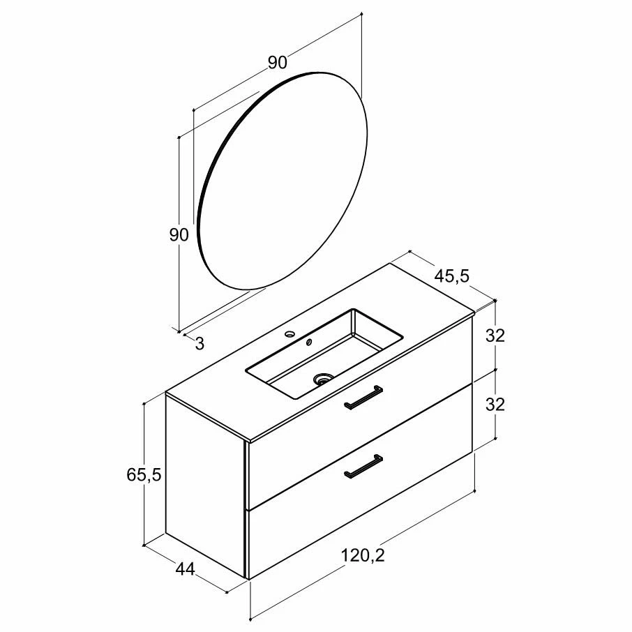 Dansani Play Möbelset inkl. Spiegel Ø 90 cm und Waschtischunterschrank mit 2 Schubladen, 120,2 cm