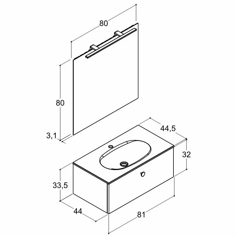 Dansani Play Möbelset inkl. Spiegel und Waschtischunterschrank mit 1 Schublade, 81 cm