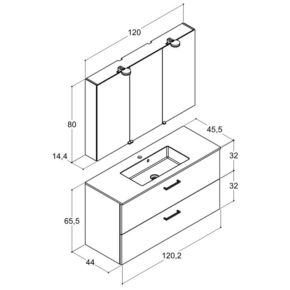 Dansani Play Möbelset inkl. Spiegelschrank „E“ und Waschtischunterschrank mit 2 Schubladen, 120,2 cm
