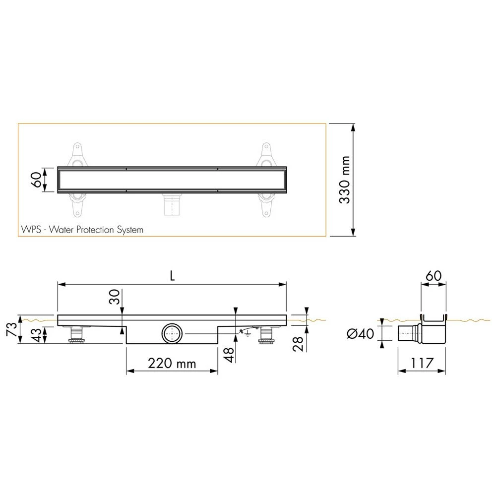 ESS Easy Drain Compact 30 FF Fliese 600 Duschrinne Komplettset