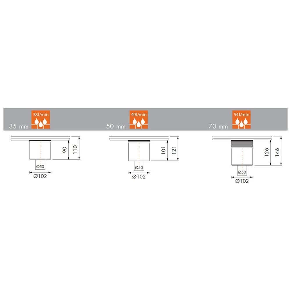 - Ablaufleistung bei Sperrwasserhöhe 5 cm: 49 L/ min