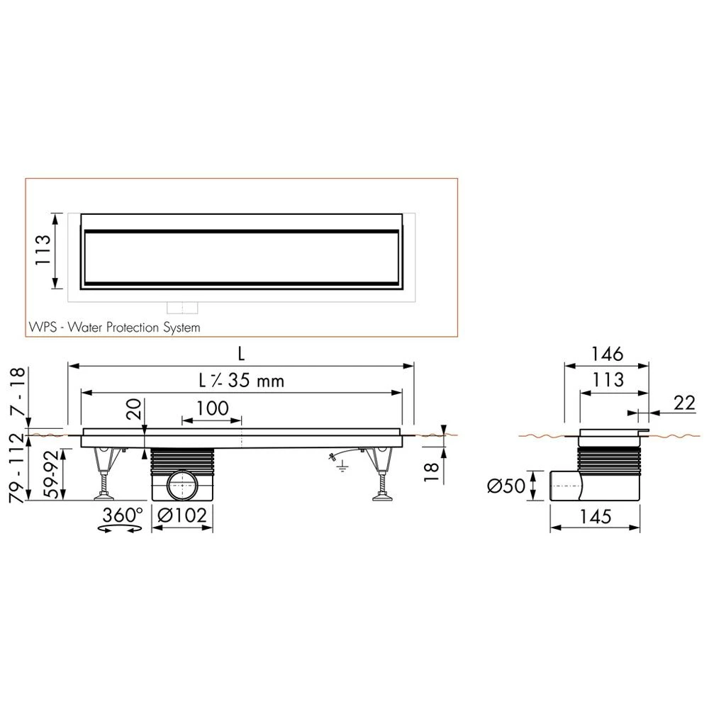 ESS Easy Drain Multi TAF Wall 1800 Zero/Fliese Duschrinne Komplettset