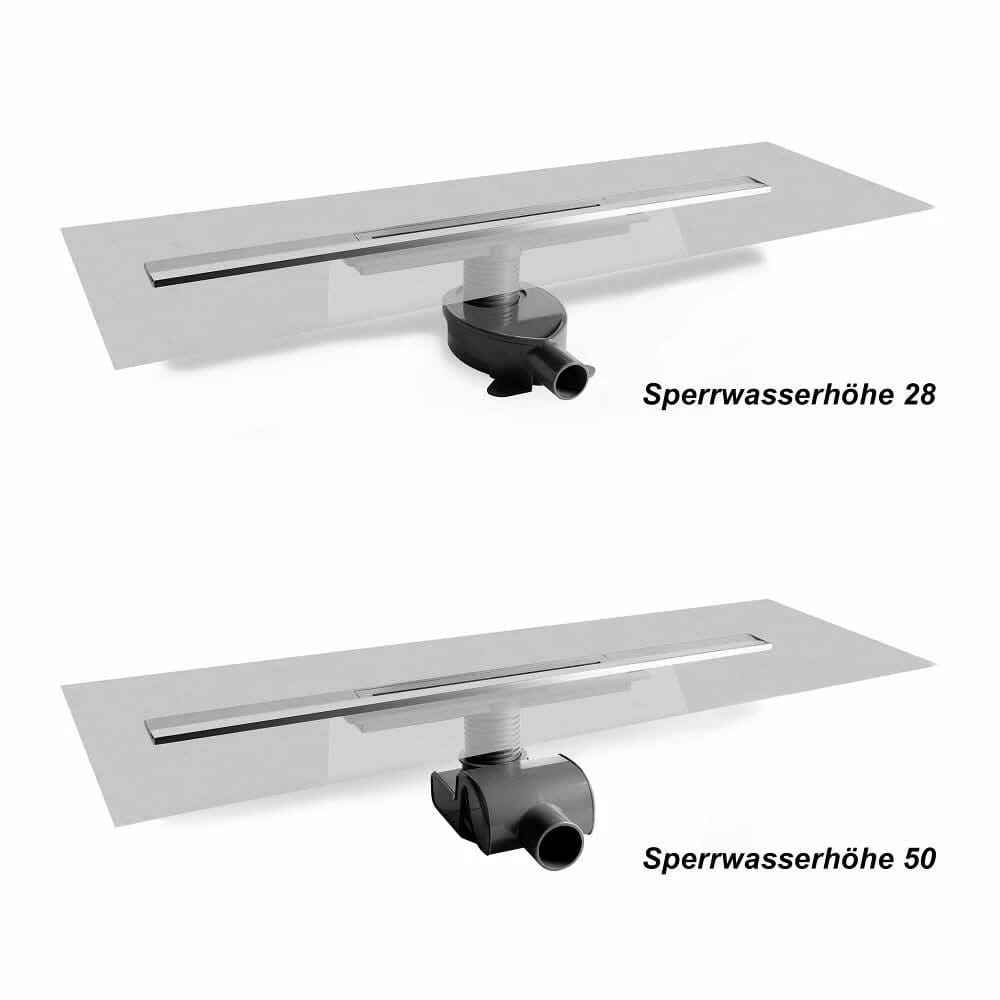 - Anschlussmaß: bei Sperrwasserhöhe 5 cm: Ø 5 cm oder bei Sperrwasserhöhe 2,8 cm: Ø 4 cm
