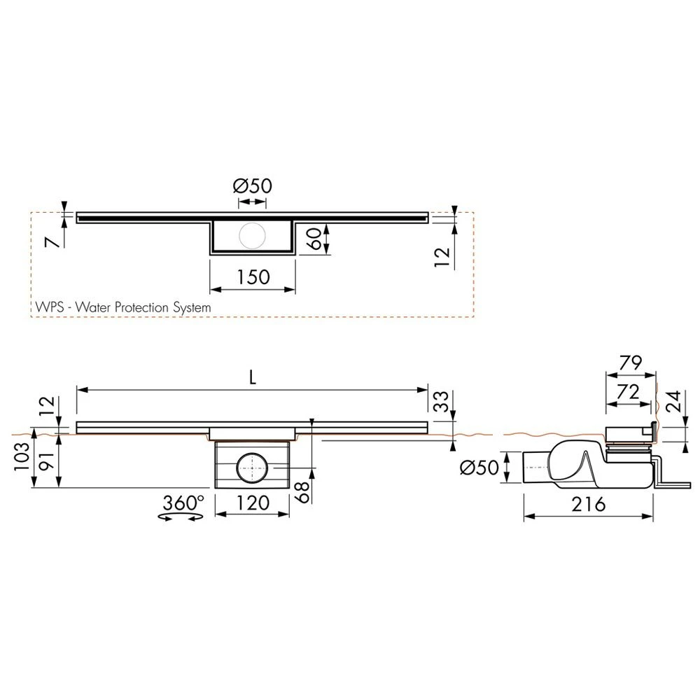 ESS Easy Drain Waterstop Wall Fliese 800 Duschrinne Komplettset