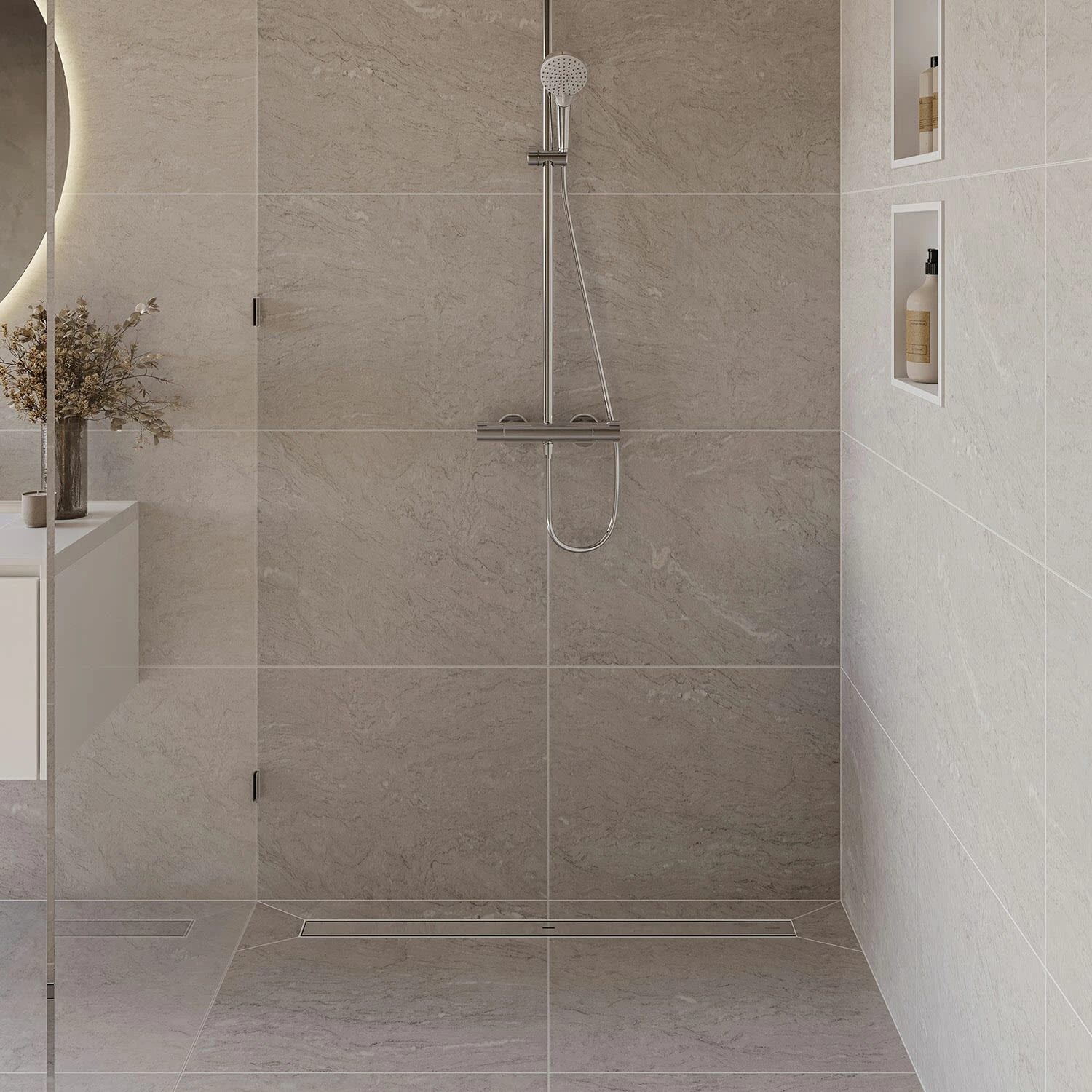 - Zeitlos schön: RainDrain Allround Duschrinne mit Oberfläche in gebürstetem Edelstahl