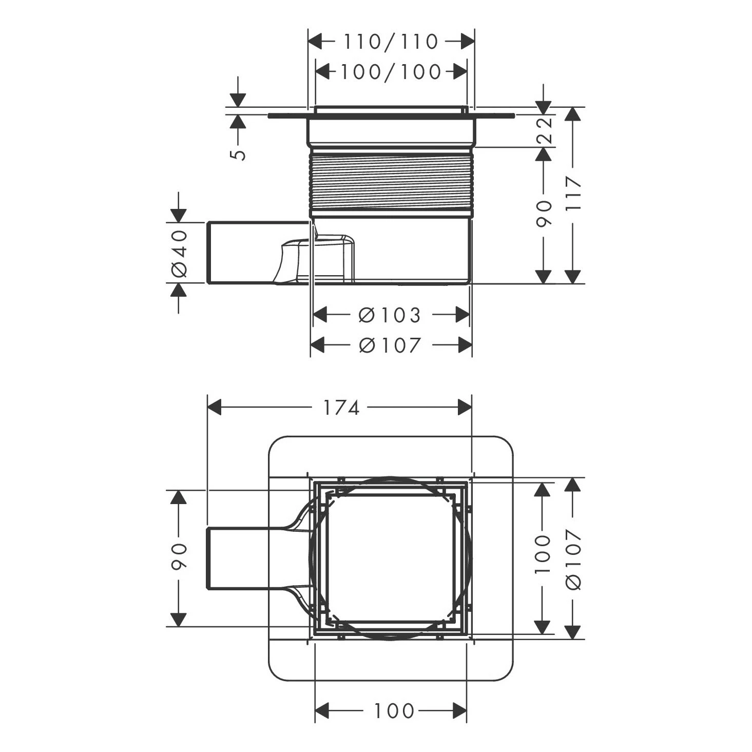 hansgrohe RainDrain Brilliance Komplettset Punktablauf 10/10 cm rückseitig befliesbar