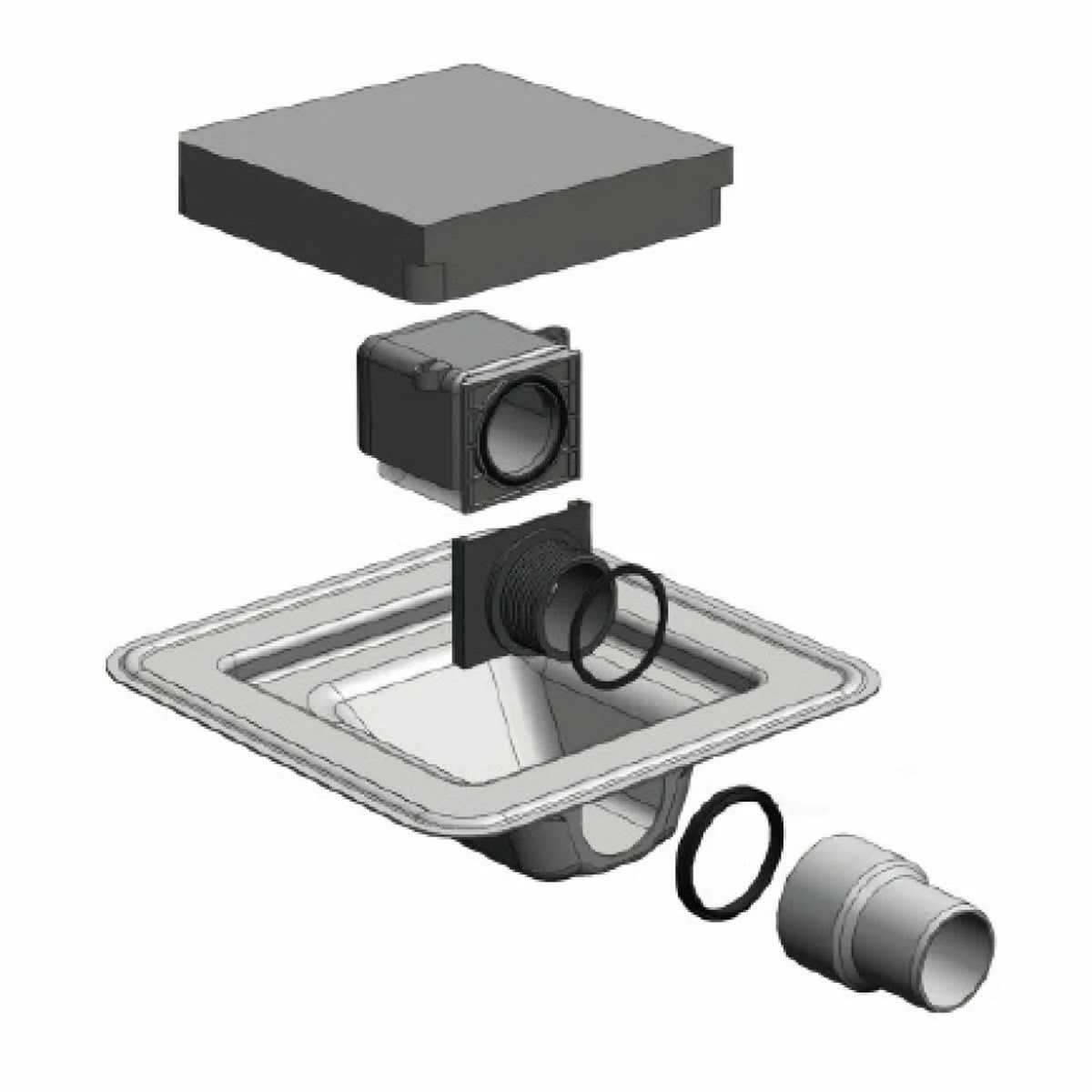 - Verbindung zum Ablaufrohr mit Gummimuffe