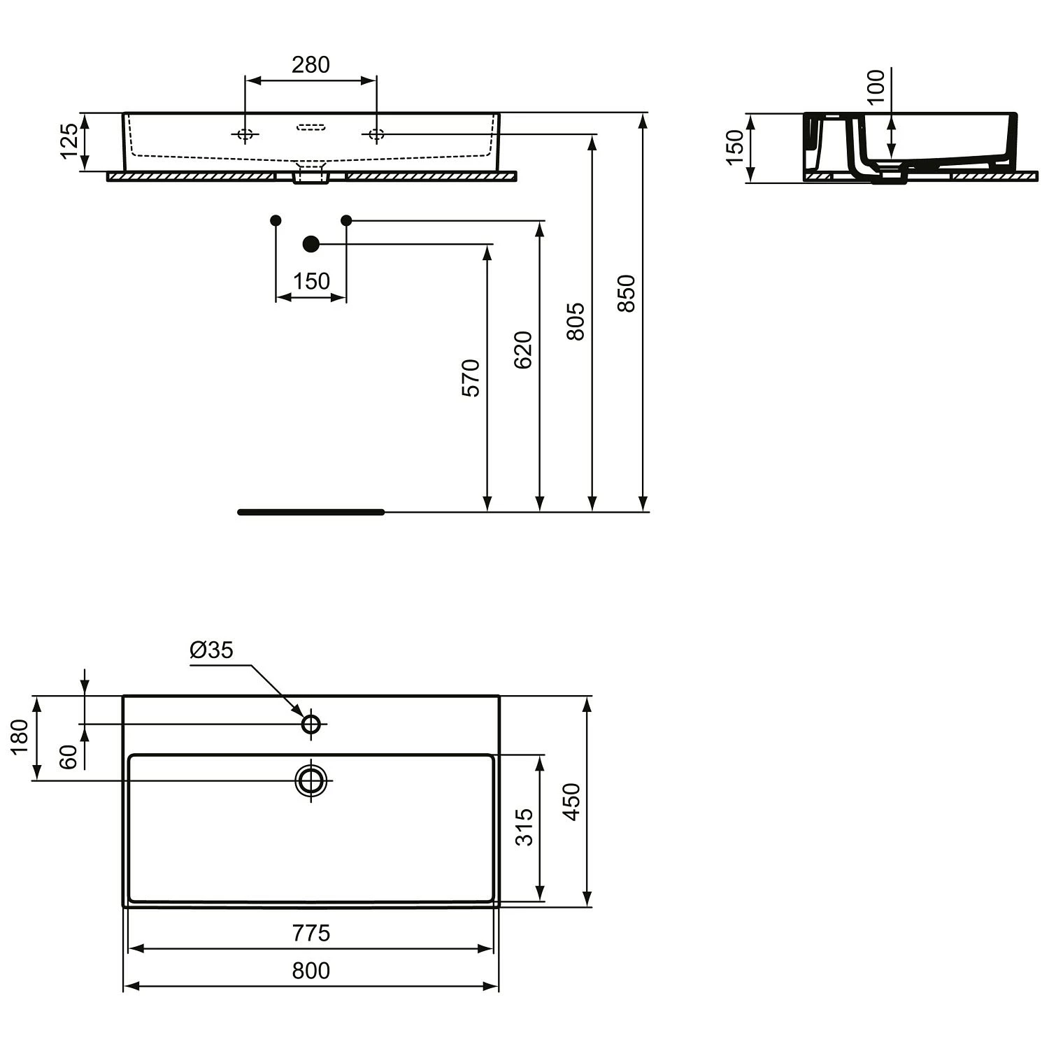 - mit Waschtischplatte: Ausschnitt mittig