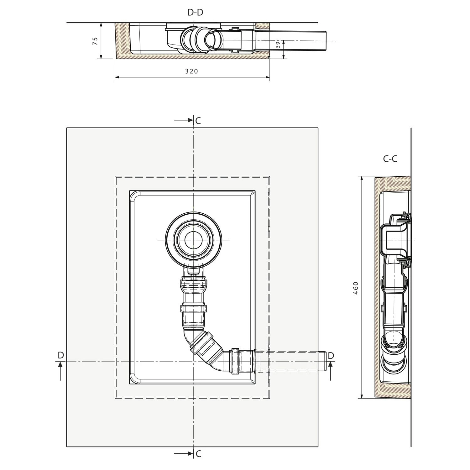 - Für 90 mm Ablaufbohrung in der Brausewanne.