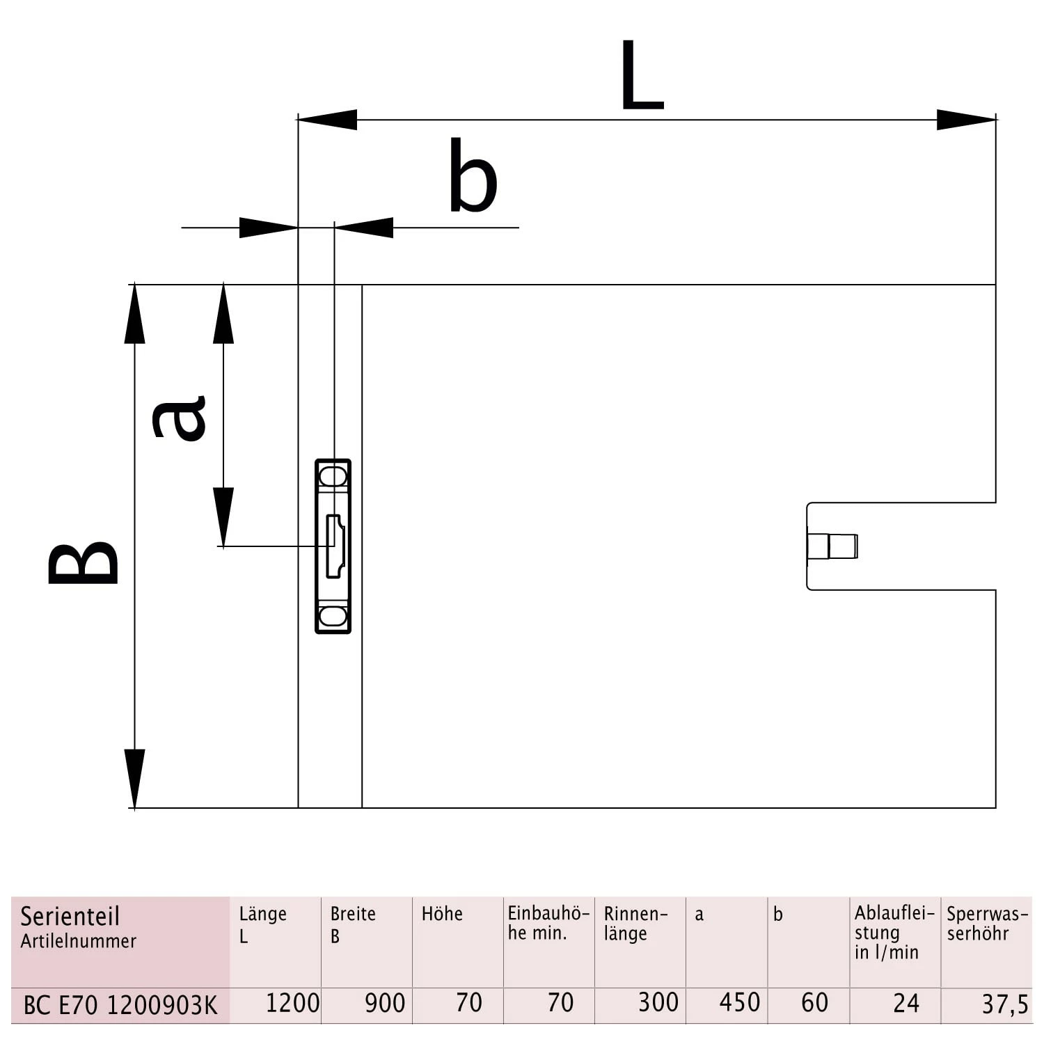 Kermi LINE Komplettboard E70 120 x 90 cm, Rinnenlänge 30 cm