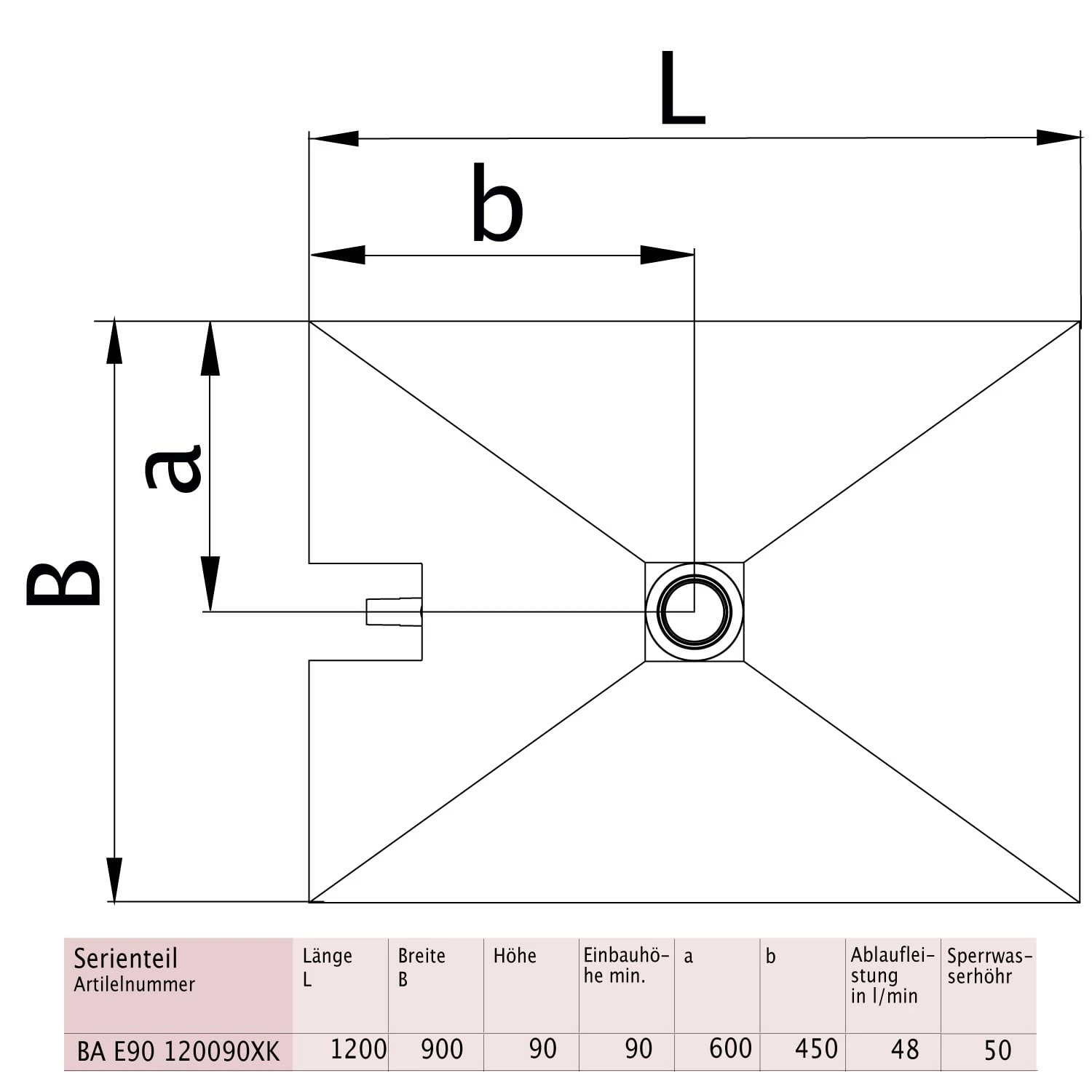 - Serienmäßig mit Ablaufabdeckung aus Edelstahl, Aufstockelement für Aufbauhöhe Fliesenbelag bis 30 mm, Ablaufrahmen (120 mm x 120 mm) aus Kunststoff und Dichtecke 800 x 800 mm