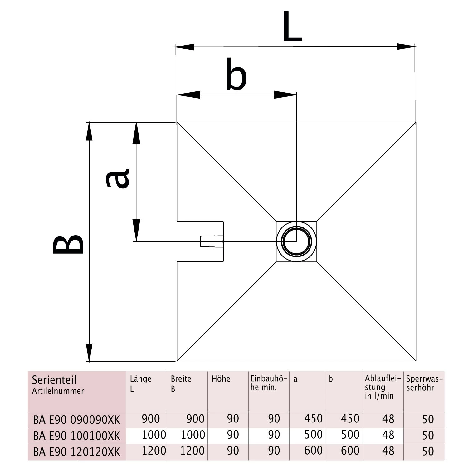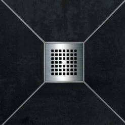 - Serienmäßig mit Ablaufabdeckung aus Edelstahl, Aufstockelement für Aufbauhöhe Fliesenbelag bis 30 mm, Ablaufrahmen (120 mm x 120 mm) aus Kunststoff und Dichtecke 800 x 800 mm