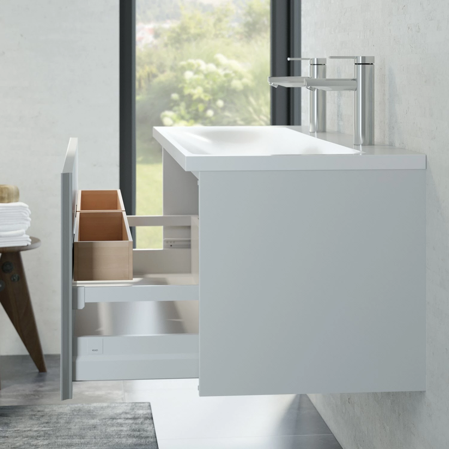 - Mineralguss-Doppelwaschtisch für zwei 1-Loch-Armaturen geeignet