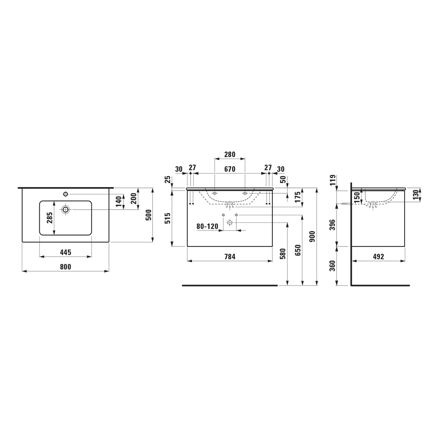 LAUFEN PRO Set LANI Waschtish mit Überlauf, inkl. Waschtischunterbau 80 cm