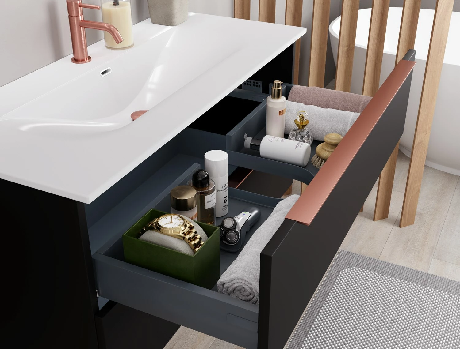- 1 Metallauszug mit Softclose-Funktion und Siphonausschnitt