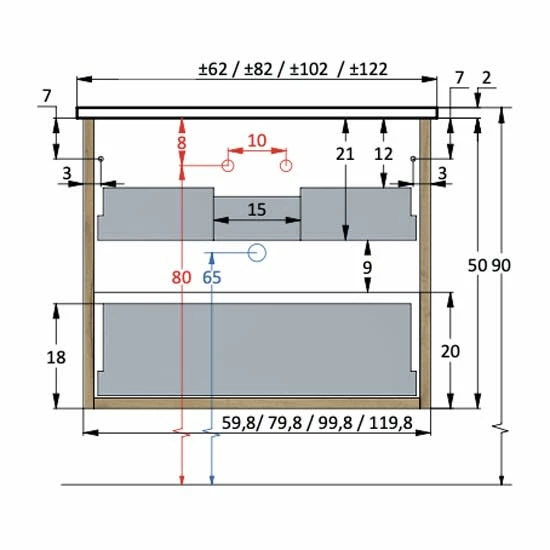 - B: 99,8 T: 45 H: 50 cm