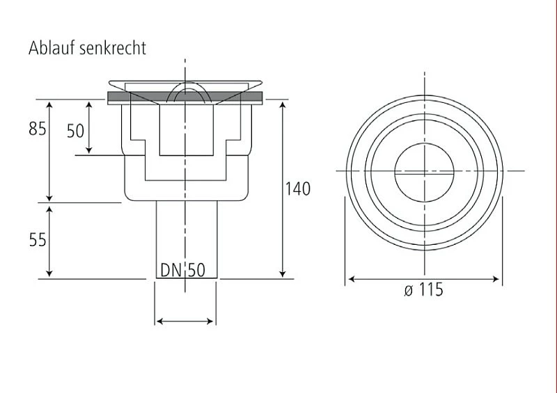 - Anschluss DN 50, Ablaufleistung 60l/min