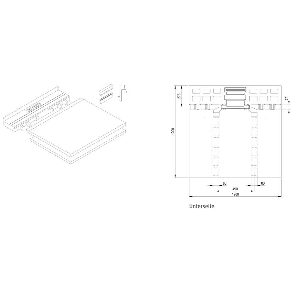 - 2-teiliges Element mit einseitigem Gefälle von ca. 1,5%