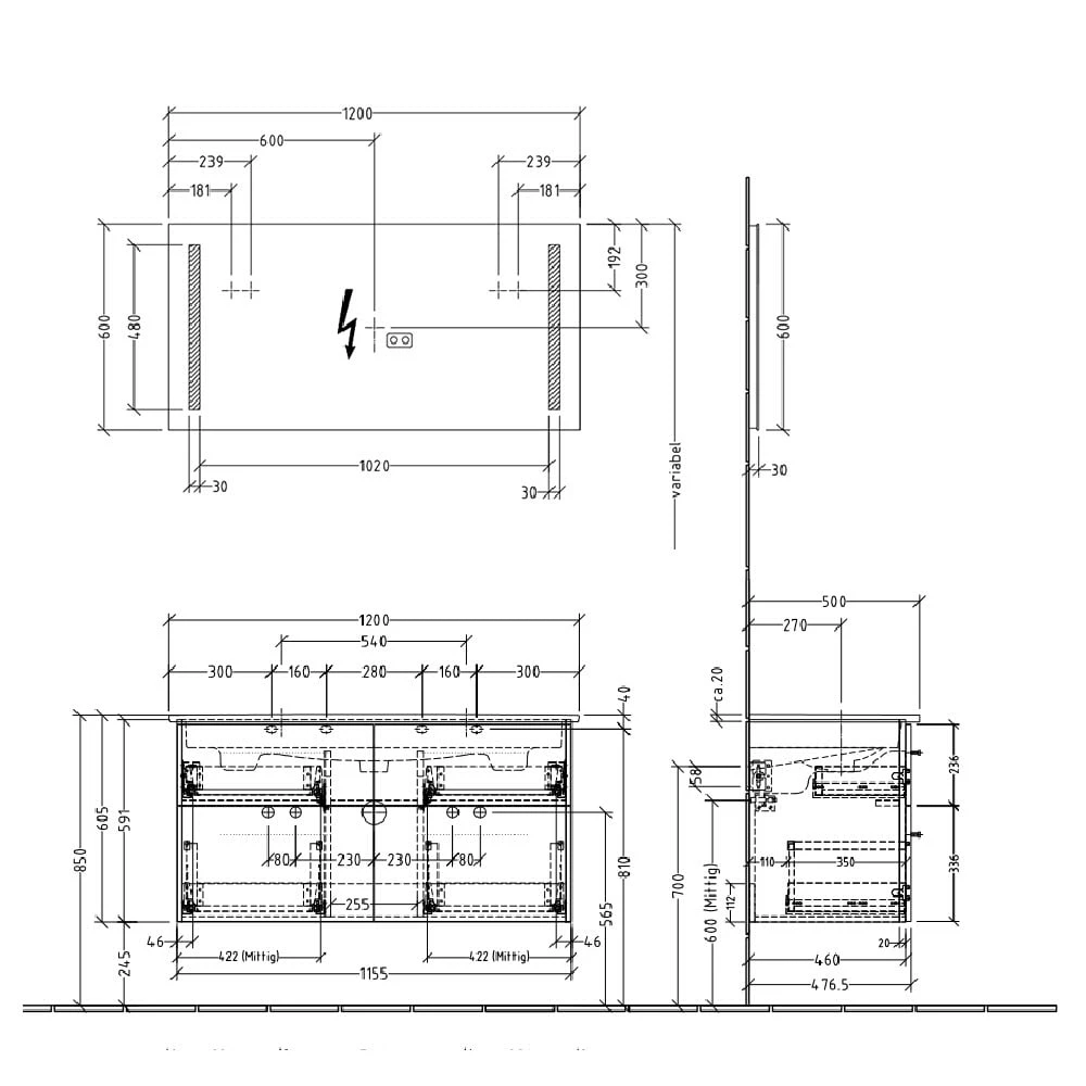 Sanipa 3way Möbelset-1 inkl. Lichtspiegel „LUCY“, 120 cm, Doppelwaschtisch