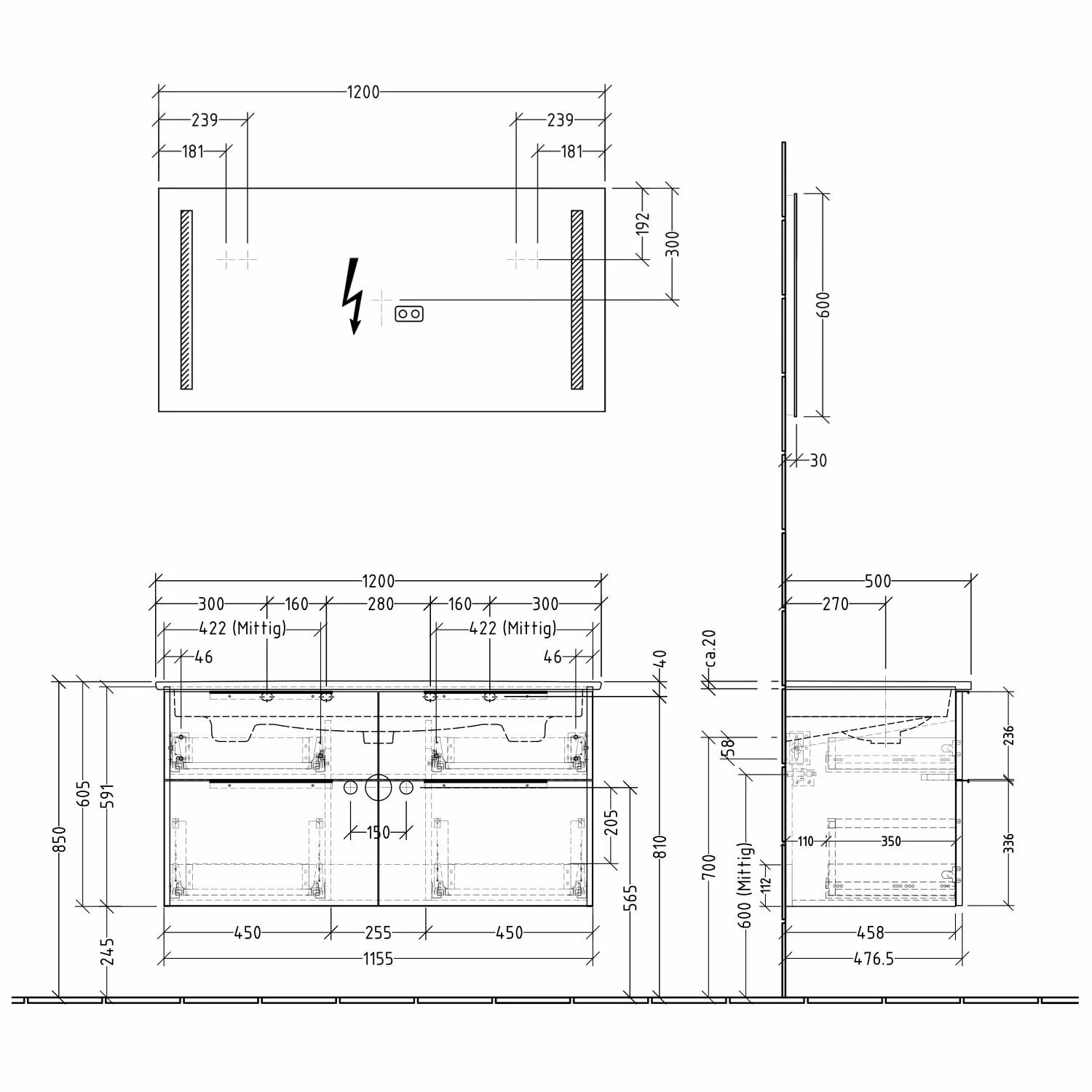 Sanipa 3way Möbelset-1 inkl. Lichtspiegel „LUCY“, 120 cm, mit Aufsatzgriffen