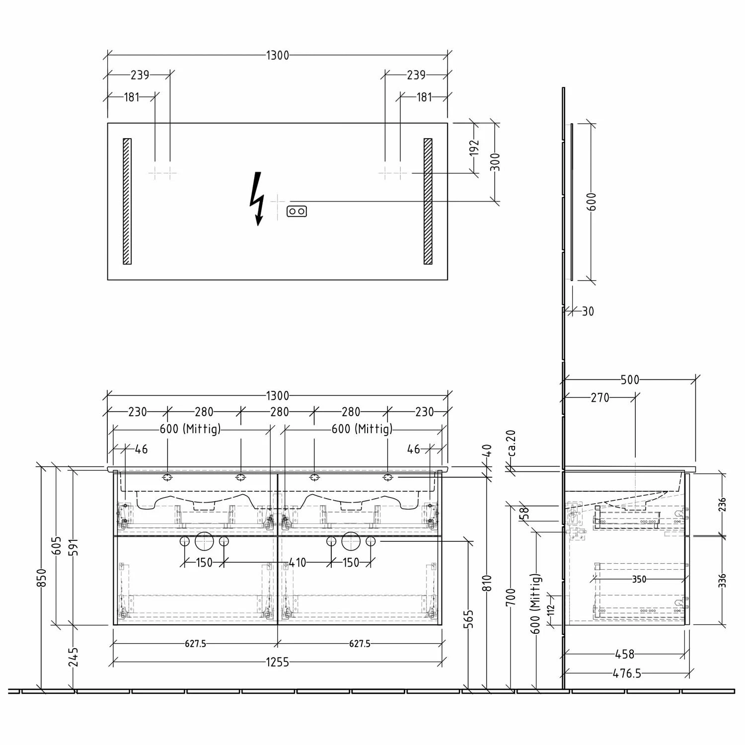 Sanipa 3way Möbelset-1 inkl. Lichtspiegel „LUCY“, 130 cm, mit Push to open