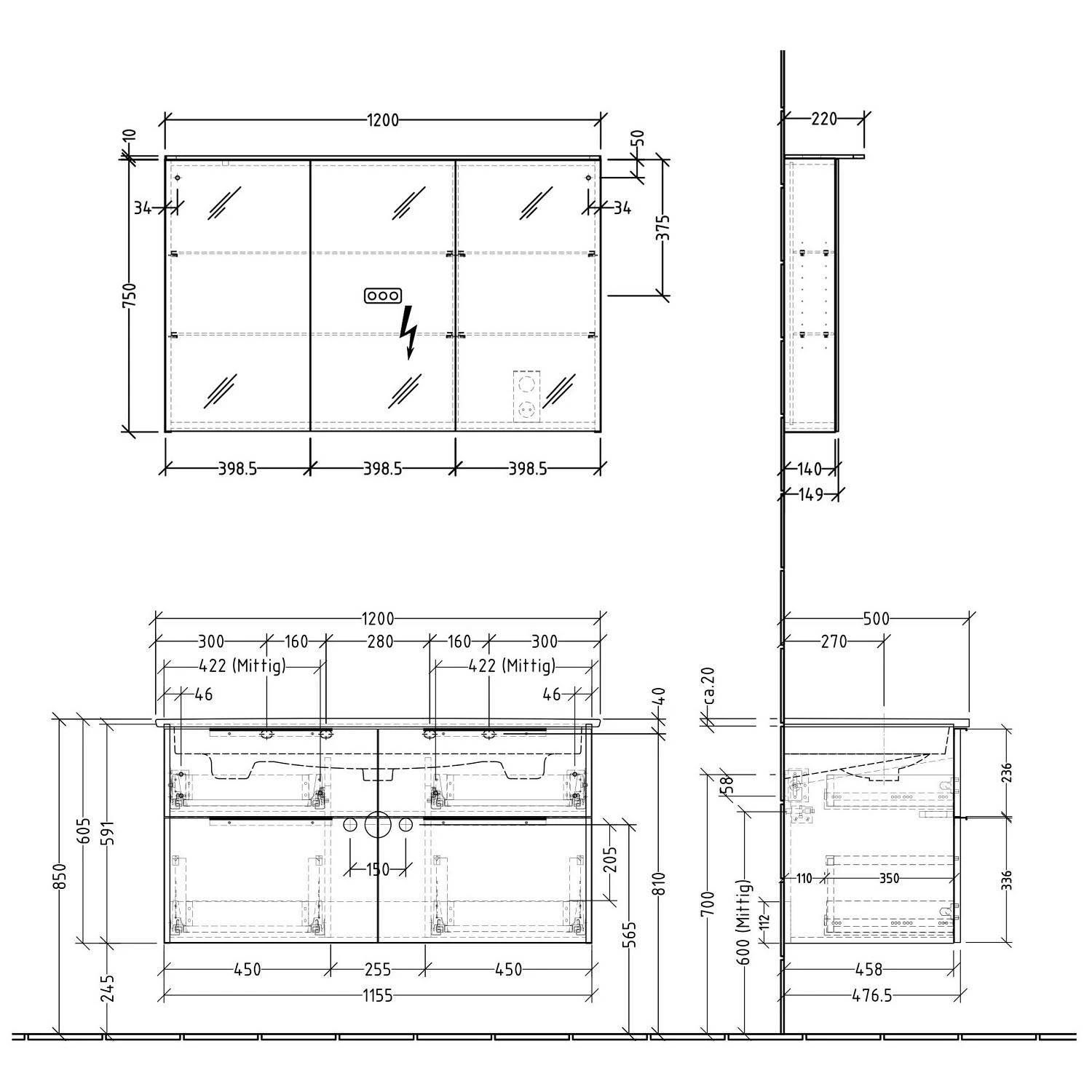 - Breite: 120 Tiefe inkl. Leuchte: 22 Höhe: 76 cm