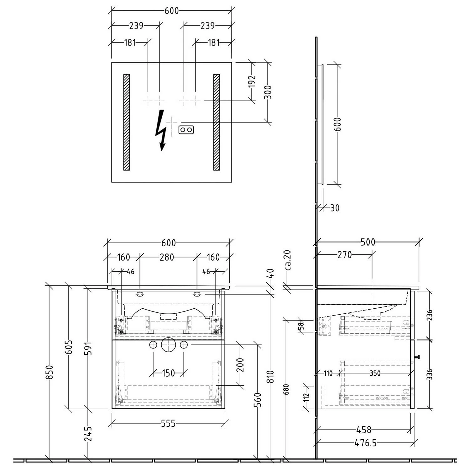Waschtisch nur mit Möbel montierbar, keine freitragende Montage möglich.