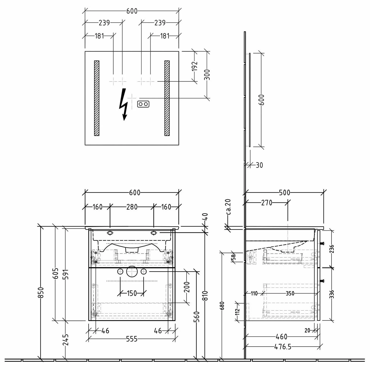 - Breite: 60,5 Gesamttiefe: 47,7 Höhe: 59,1 cm, Korpustiefe: 46 cm