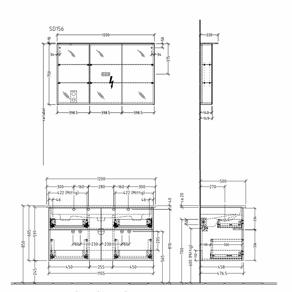 - Breite: 120 Tiefe inkl. Leuchte: 22 Höhe: 76 cm