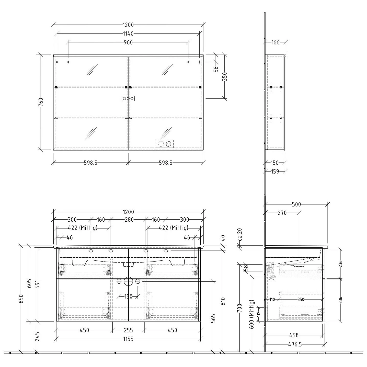 Sanipa 3way Möbelset inkl. Spiegelschrank „ARND“, 120 cm, mit Push to open