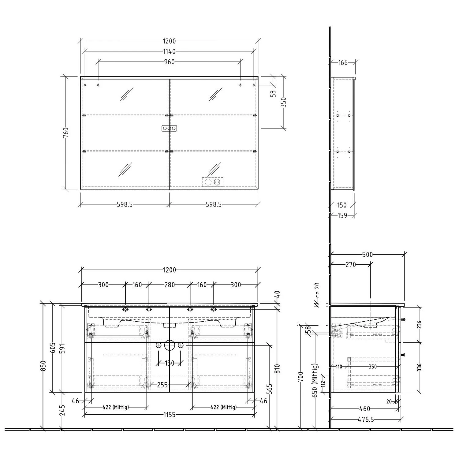 Sanipa 3way Möbelset inkl. Spiegelschrank „ARND“, 120 cm