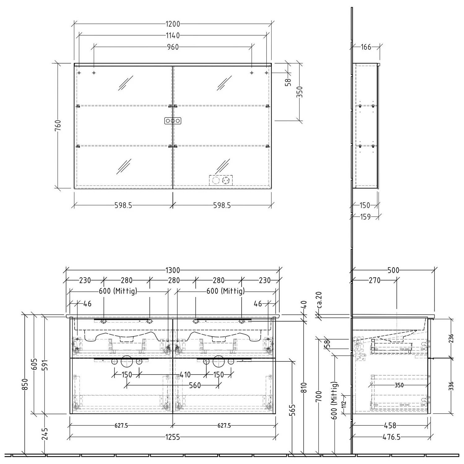 Sanipa 3way Möbelset inkl. Spiegelschrank „ARND“, 130 cm, mit Aufsatzgriffen