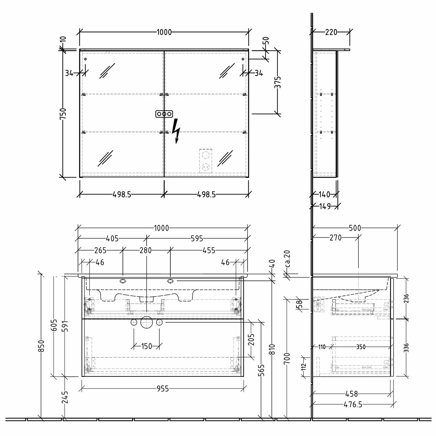 - Breite: 100 Tiefe inkl. Leuchte: 22 Höhe: 76 cm