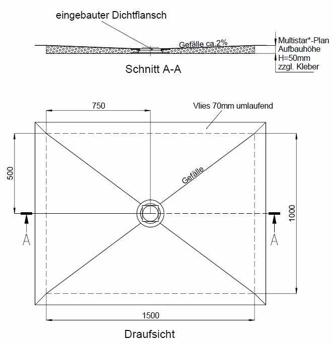 - eingedichteter Pressdichtungsflansch zur Punktentwässerung für u.g. Abläufe