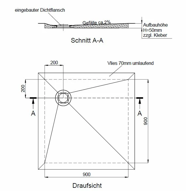 - eingedichteter Pressdichtungsflansch zur Punktentwässerung für u.g. Abläufe