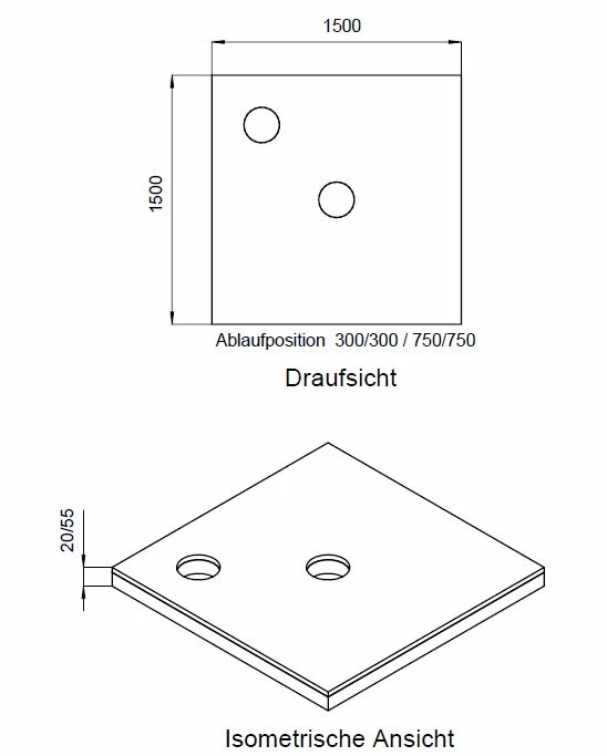 Schedel Plan Unterbauelement 150 x 150 cm bodeneben, 2er Set