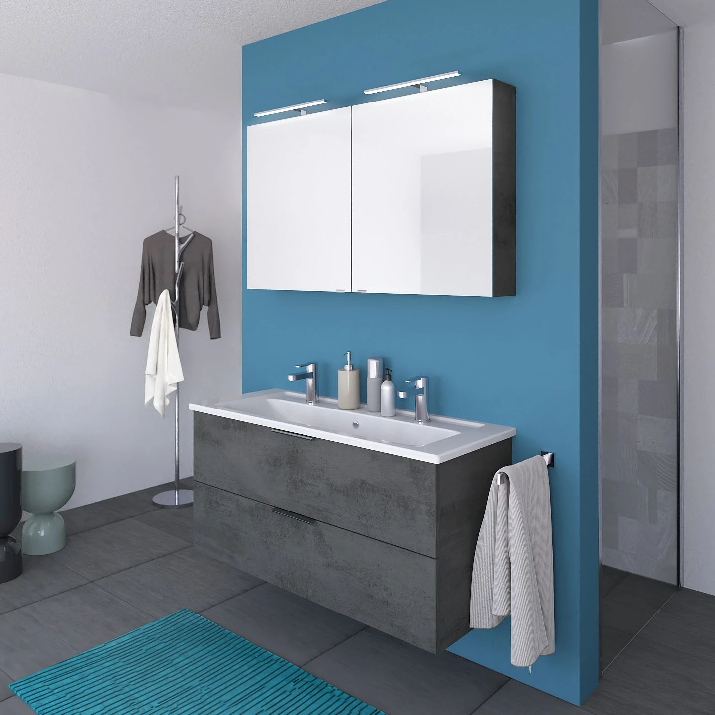 Steinkamp Living 2.0 Badmöbel Set 120 cm mit Spiegelschrank