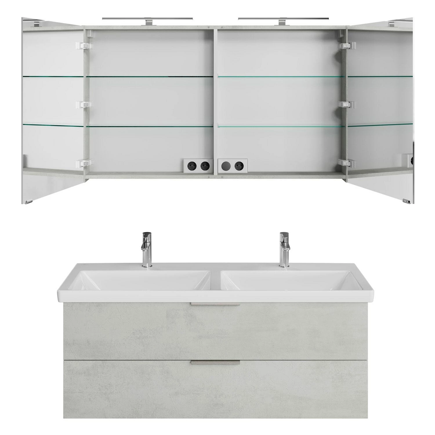Steinkamp Living 2.0 / Villeroy & Boch Subway 3.0 Badmöbel Set 130 cm mit Spiegelschrank, 3 Drehtüren