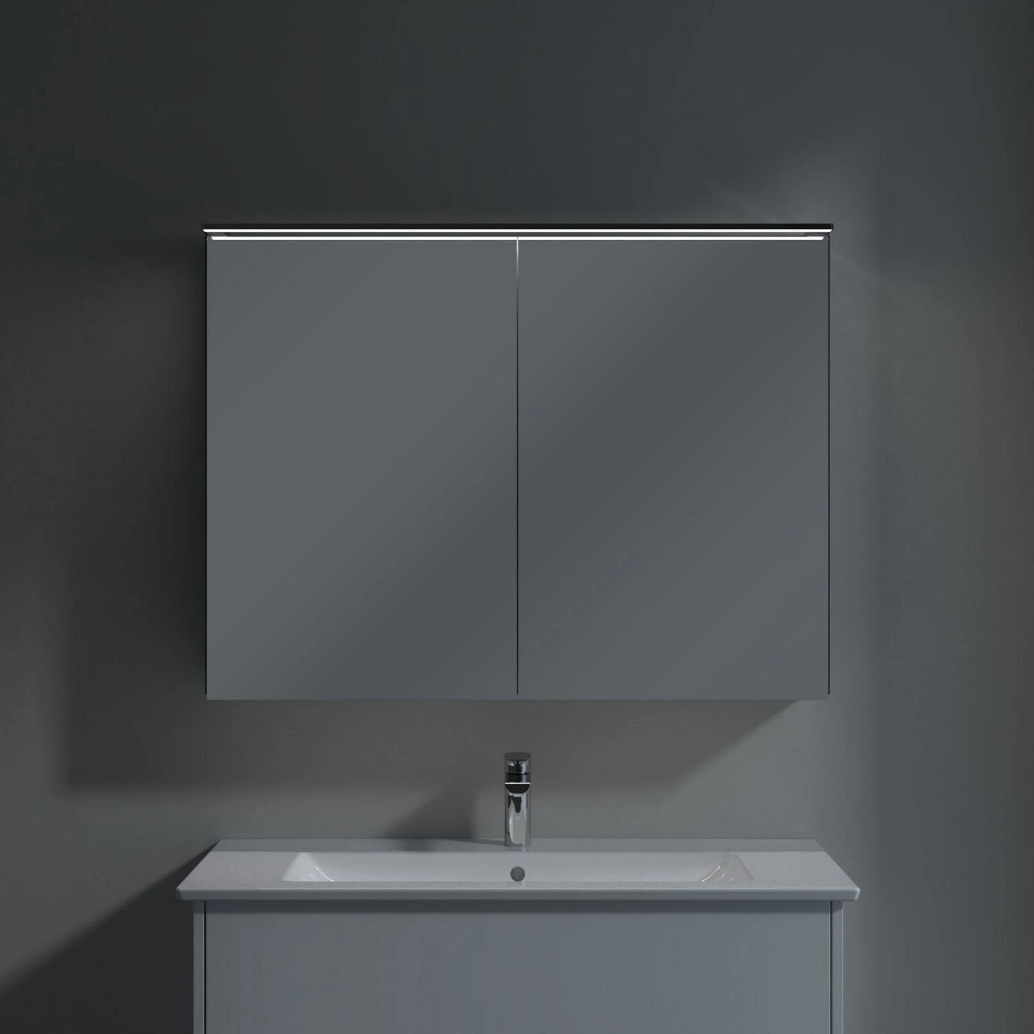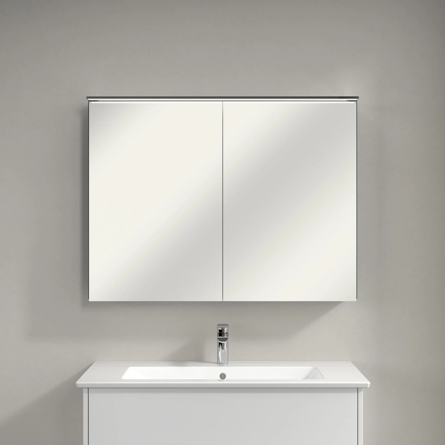 Villeroy & Boch Finero Waschtischunterschrank 100 cm mit Waschtisch und Spiegelschrank, 2 Auszüge