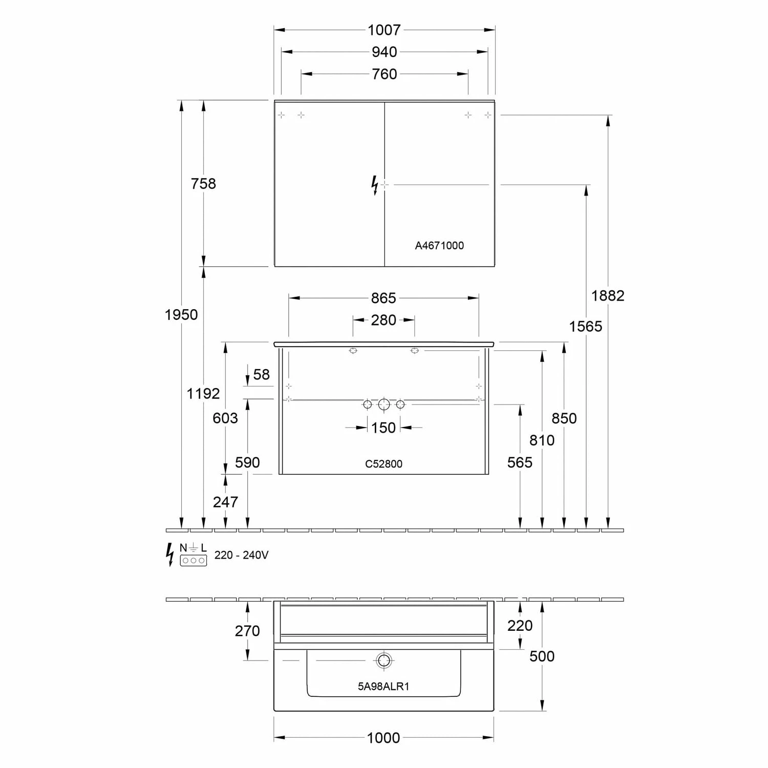 - Maße Waschtischunterschrank: B: 95,3 T: 47,7 H: 59 cm