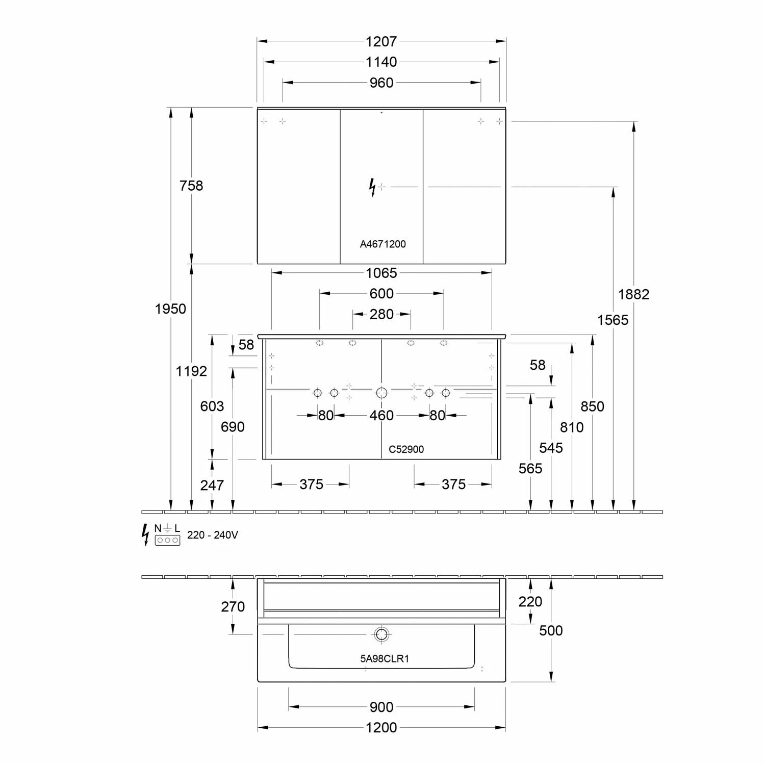 Villeroy & Boch Finero Waschtischunterschrank 120 cm mit Waschtisch und Spiegelschrank, 4 Auszüge
