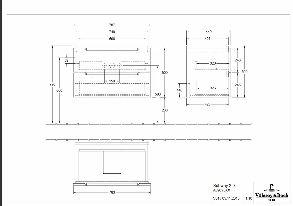 Villeroy & Boch Subway 2.0 Waschtisch-Kombination 80 cm mit 2 Auszügen und Spiegelschrank My View 14