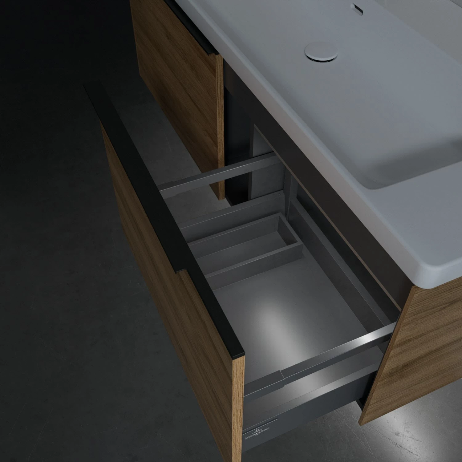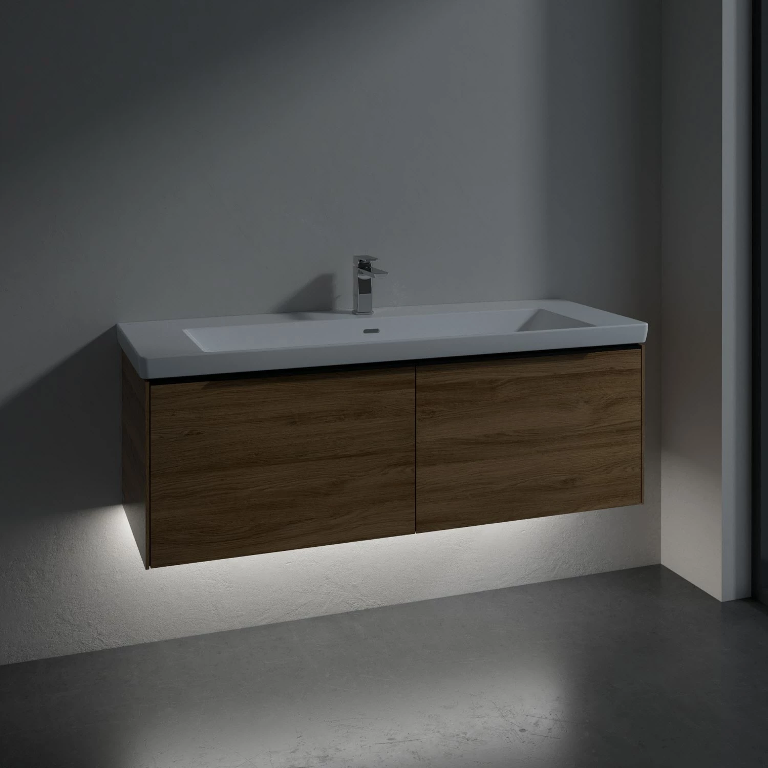 Villeroy & Boch Subway 3.0 Badmöbel-Set 130 cm mit Beleuchtung, Griff volcano black, 2 Auszüge